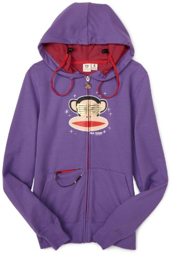 Paul Frank The Ray Ban Julius Buddies Hoody hood ,Sweatshirts for Women: Model is wearing a size Small Zip-up hoody with screen print on front; drawcord at neck with functioning earphones; front zip pocket for MP3 player; 2 front pockets; ribbed hem and cuffs; Julius logo zipper detail; 100% washable; DO NOT PUT IN DRYER! LINE DRY ONLY; 95% cotton 5% spandex. By Paul Frank Features